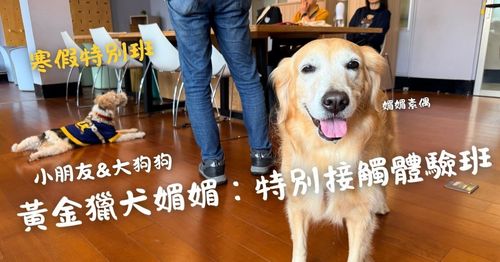 小朋友與大狗狗的接觸體驗班開課!由阿德老師與黃金獵犬媚媚帶領,專為 4-6 年級小朋友設計。兩小時體驗課,小班制(6 人開班、10 人滿班),需家長陪同。